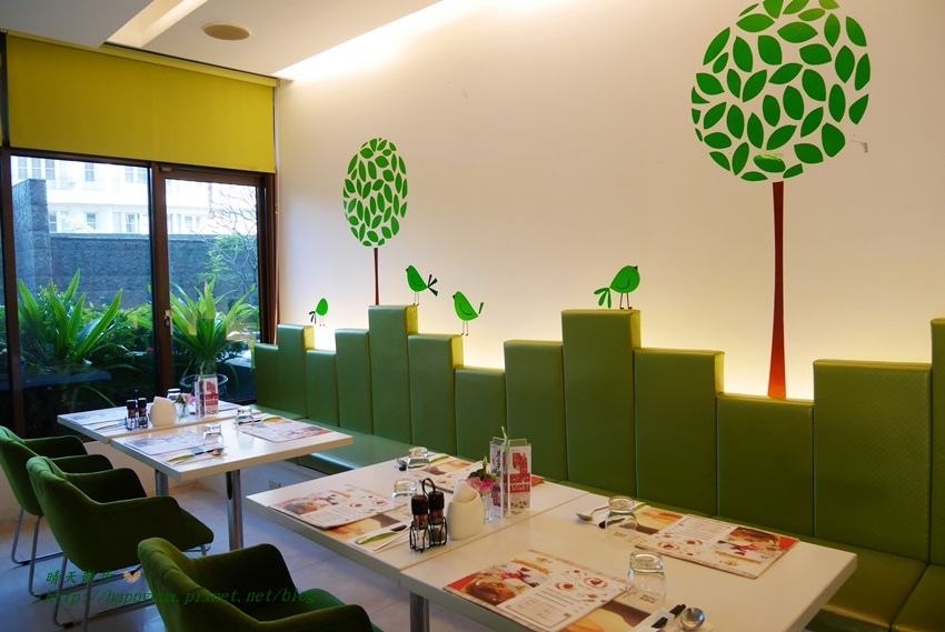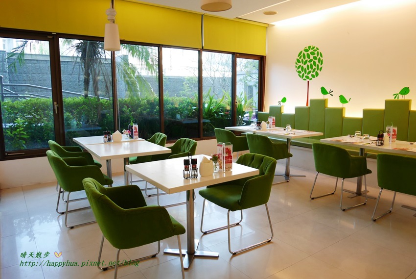 裡面的座位區塊空間感也不錯,窗外有陽光、綠意,感覺很舒服。