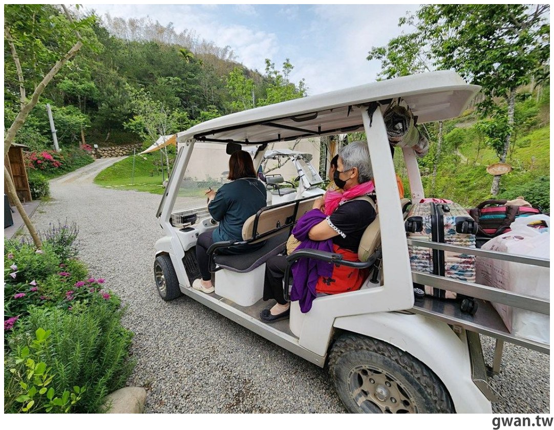抵達後,管家會開著球車幫忙載行李,接待客人前往大廳辦理入住,隨後再送往住宿地點