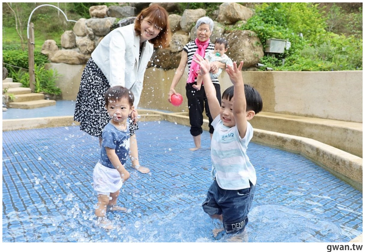 接待大廳旁有一個簡單的戲水池,早上9~11點與下午3~6點都可以帶小朋友來玩水