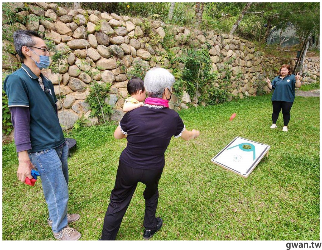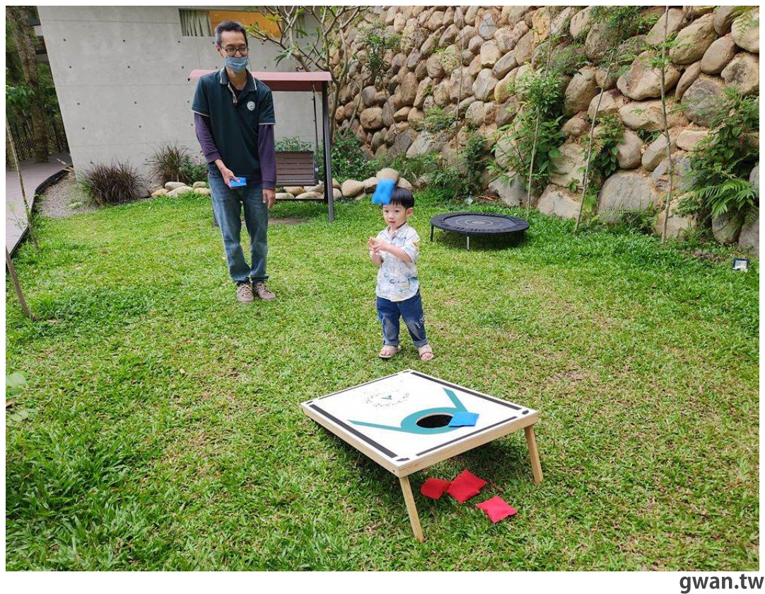 園區裡面有超大草皮,也設置許多讓小朋友放電的設施,辦理入住時可以順便借一些玩具或器材,琳瑯滿目的桌遊也能借回去晚上一起同樂