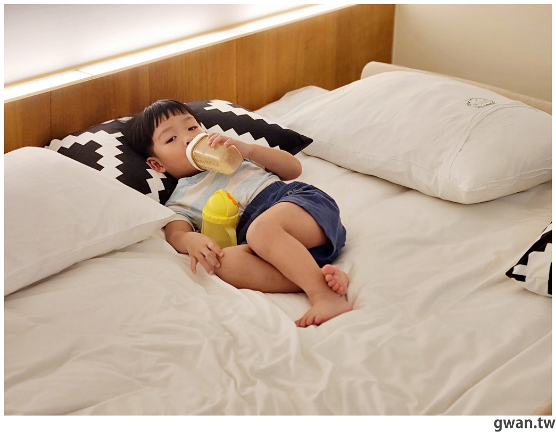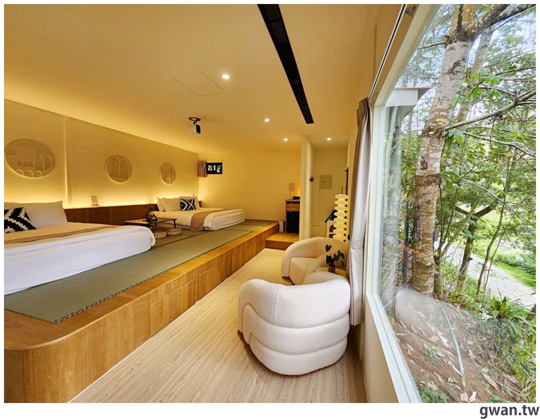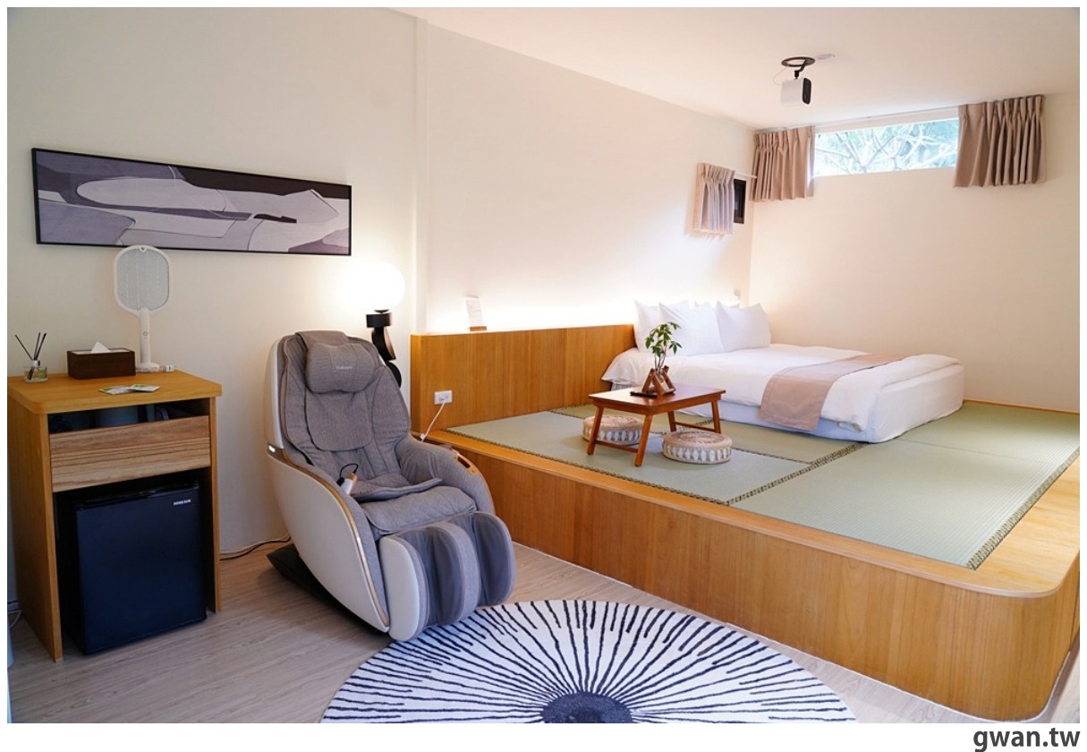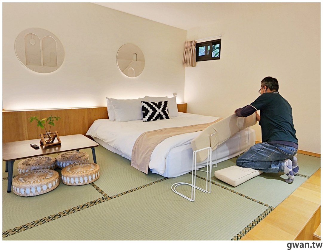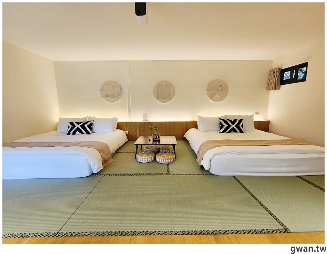 房間內有點日式簡約風,兩張Quenn Size床墊放在榻榻米上,高低落差不大,對親子家庭來說相當友善!