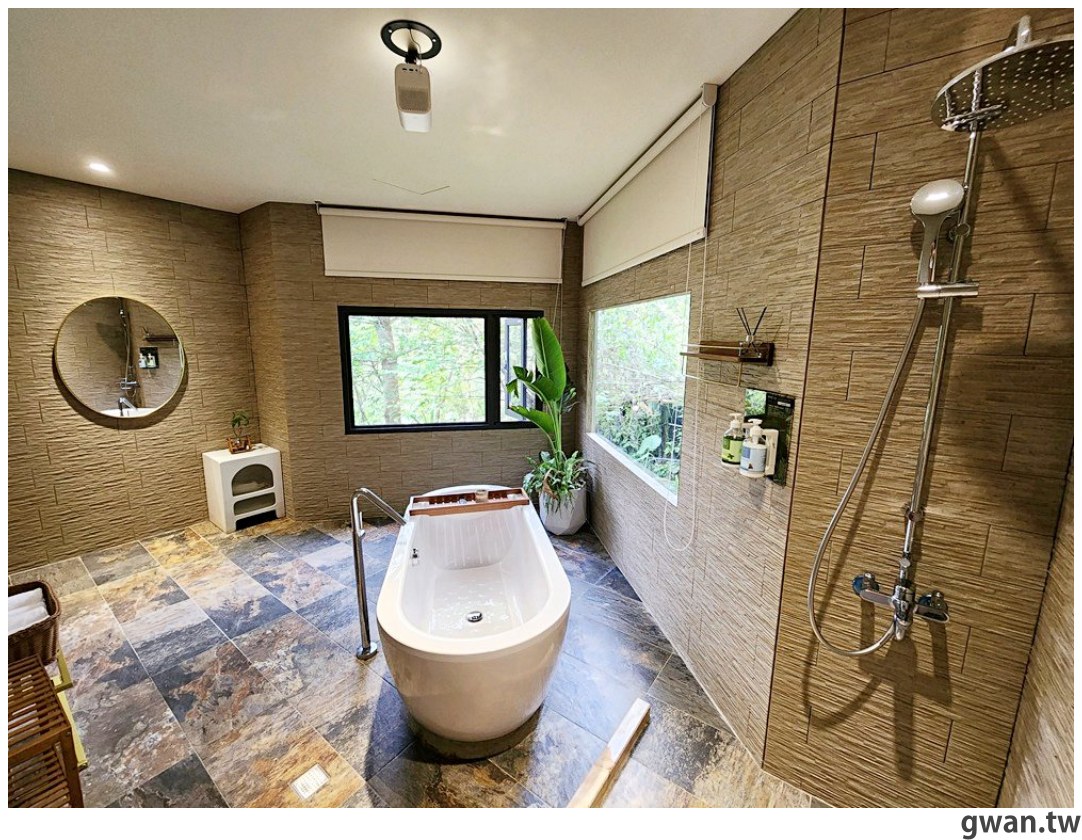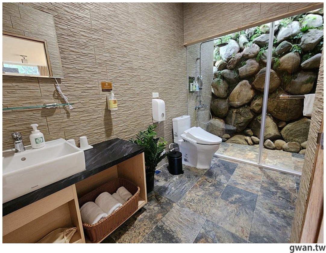 浴室空間蠻大的,就連淋浴間都用石壁圍起來,很親近大自然的感覺