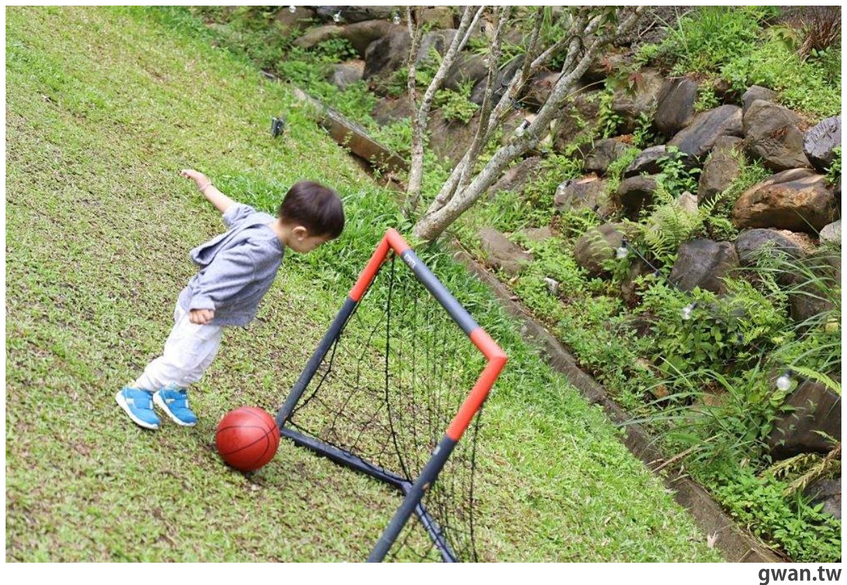 房門打開就是綠油油的草皮,還有許多遊戲設施,直接讓小孩在這裡奔跑放電,晚上更好睡XD