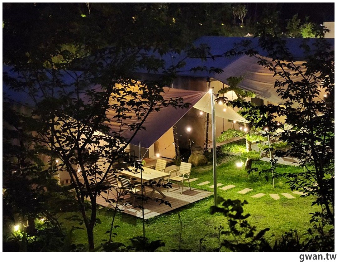 如果你想體驗偽露營的悠閒感,可以選這種有帳篷的房型,乍看真的以為在露營,但其實後方是房間的設計,既可以體驗露營感,但住宿上又更為舒服便利,我覺得很棒耶!