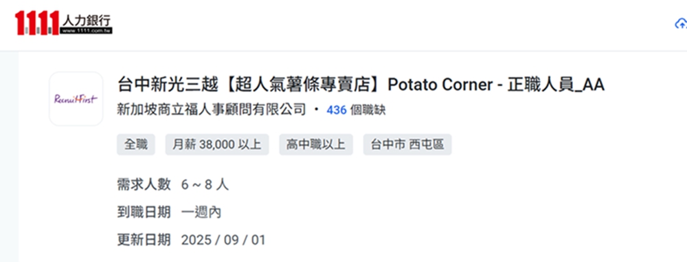 但人力銀行上已經開出職缺,而且到職日期一週內,感覺也是很積極在籌備新分店