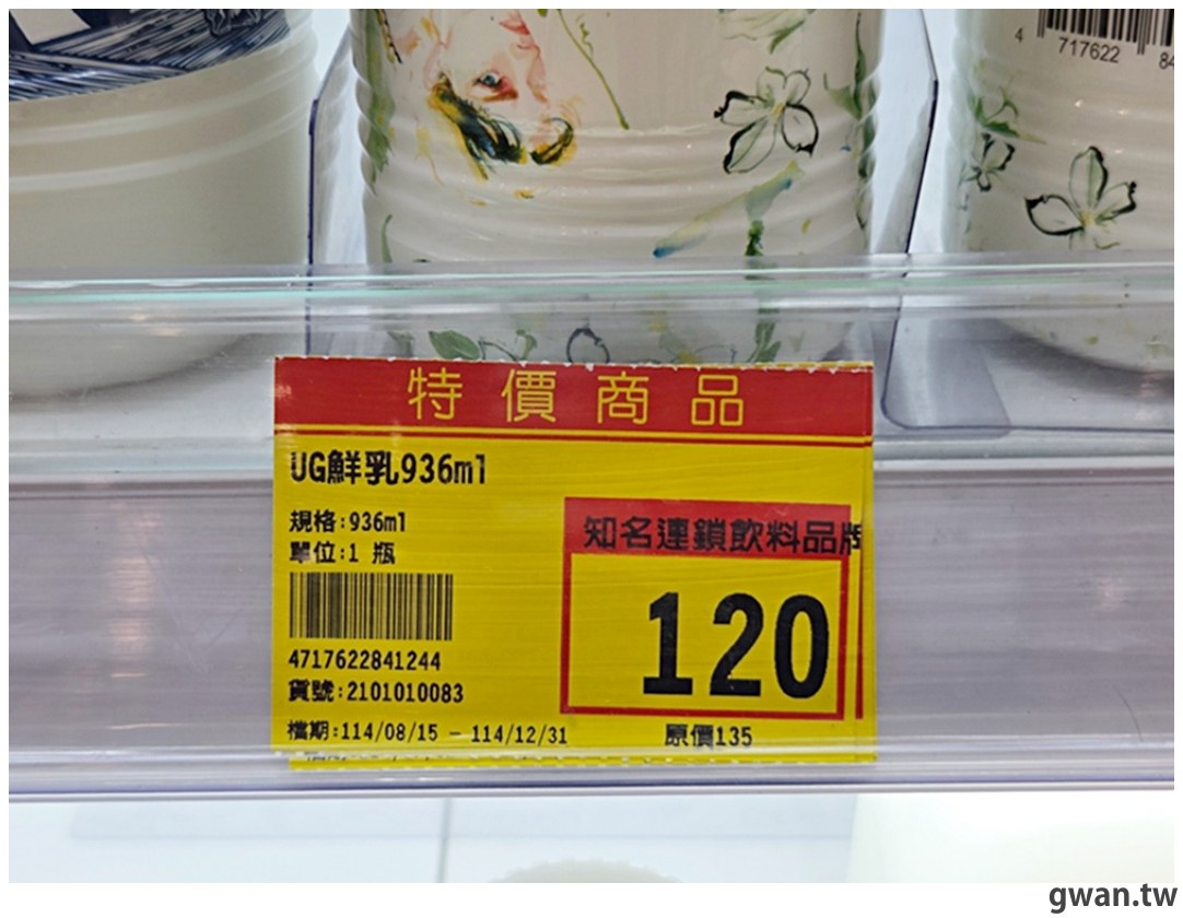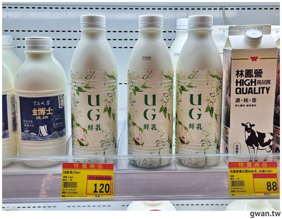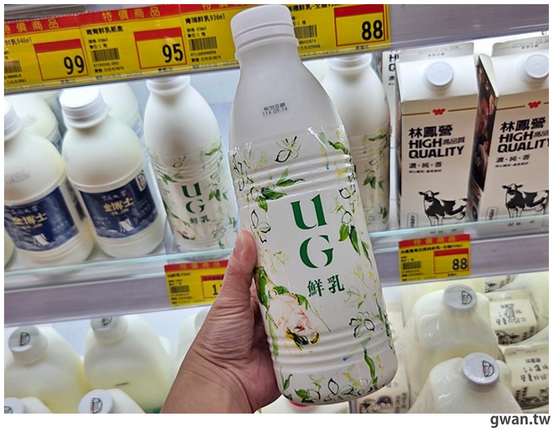 什麼!你知道UG有賣鮮奶嗎?相信連很多UG鐵粉都不知道吧!我對UG的印象一直停留在手搖飲,沒想到他們家居然有自己的鮮奶耶,而且我不是在手搖店發現UG鮮奶,而是在超市裡面遇見的!現在除了廣三SOGO樓下的好地方超市外,家樂福量販店跟楓康超市也拓點了,不過進貨數量都不多,常常一上架就被掃空,價格雖然比別人貴,但還是好多人想問哪裡買?