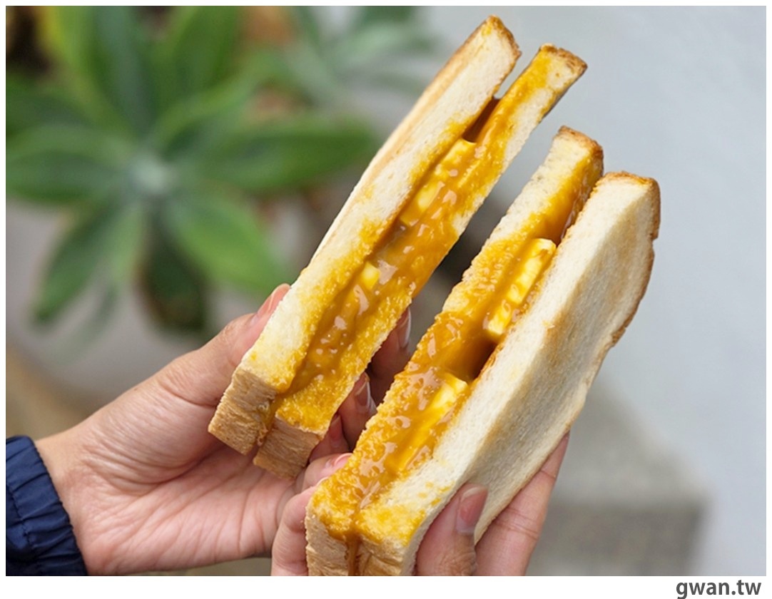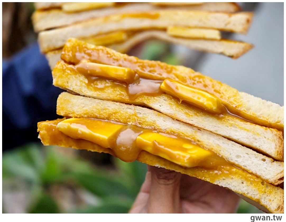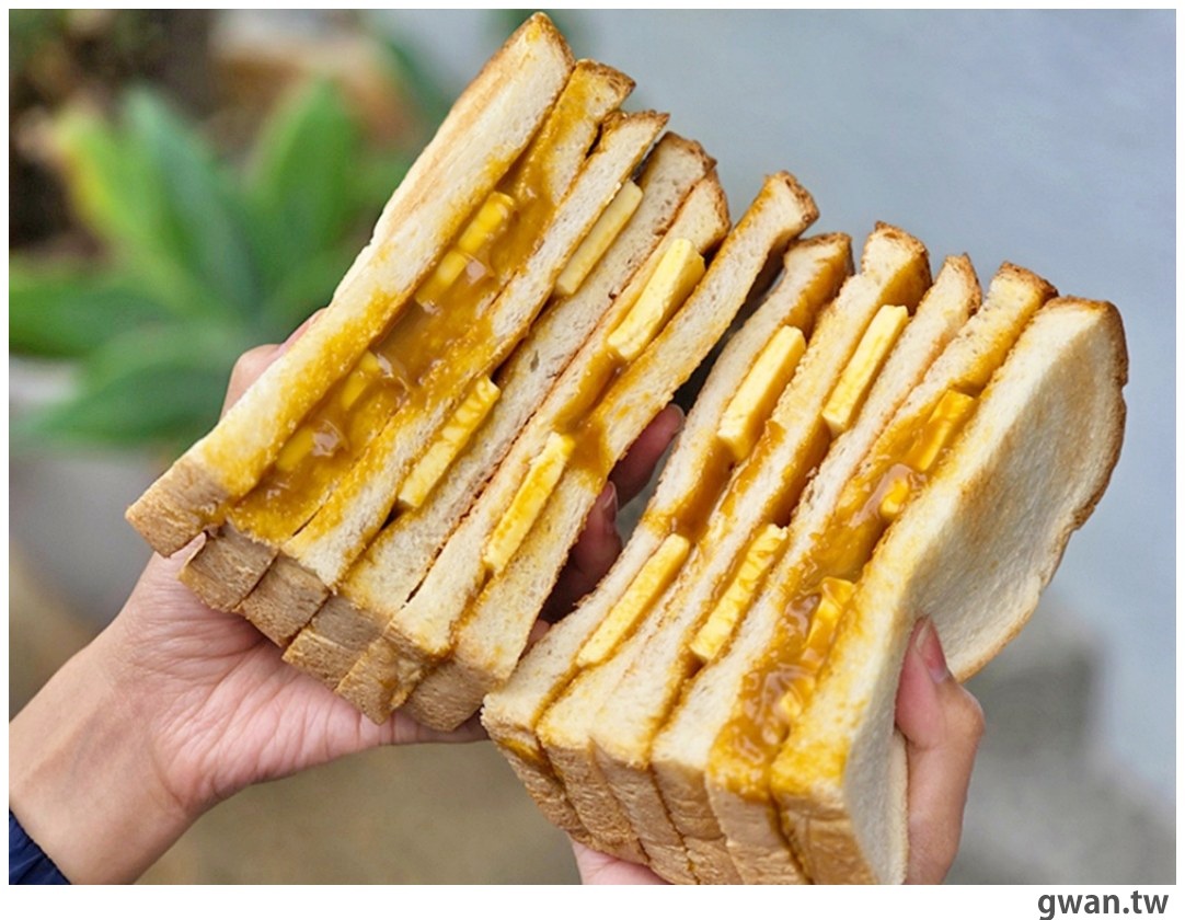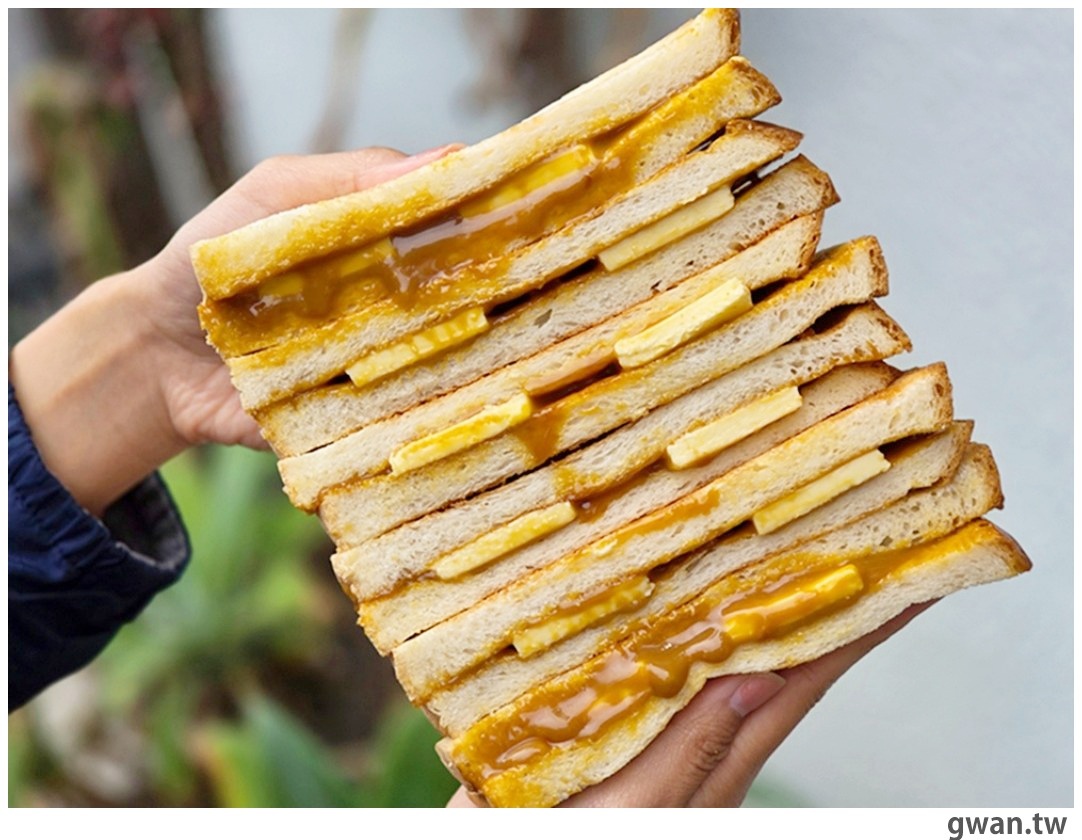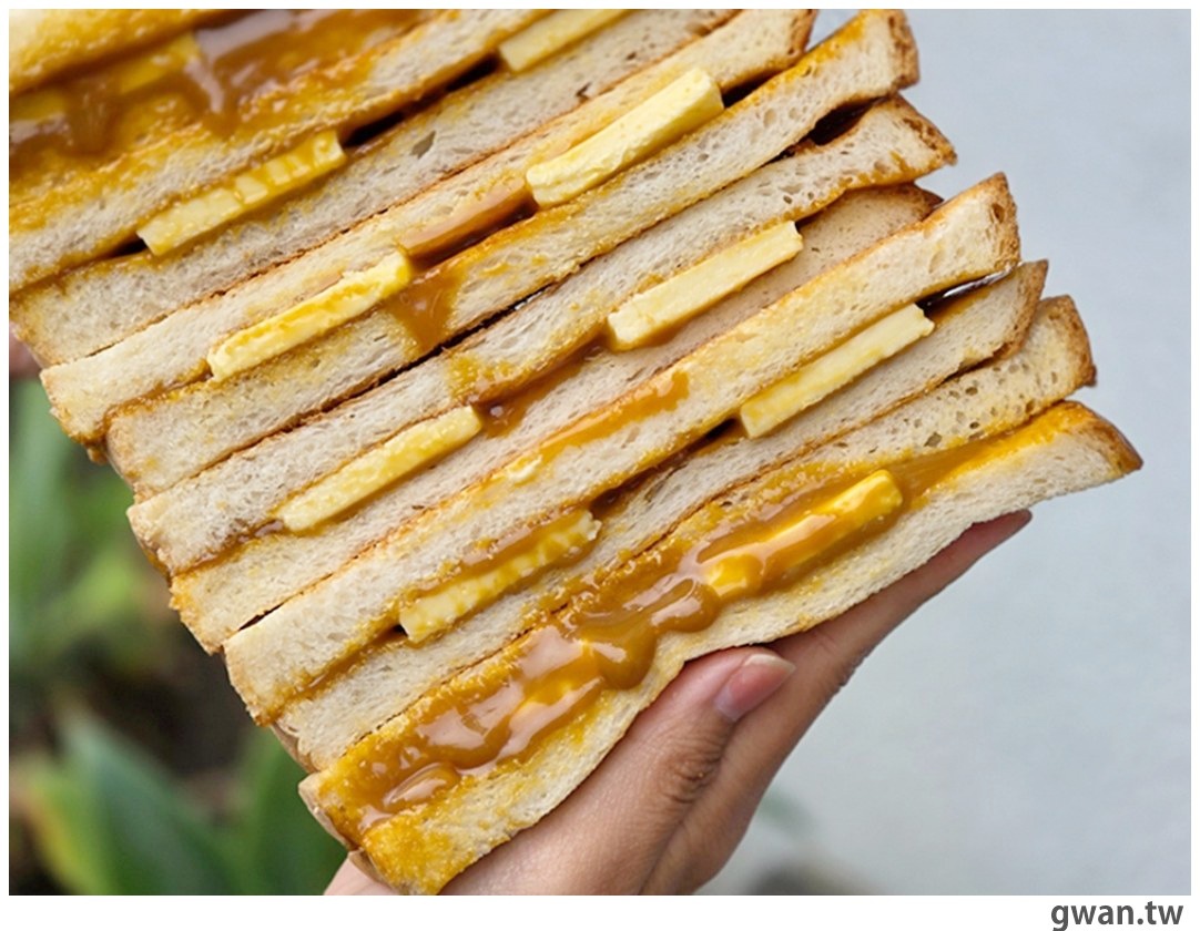 吐司是比較大片那種,外層烤到金黃香酥,看起來就好吃~