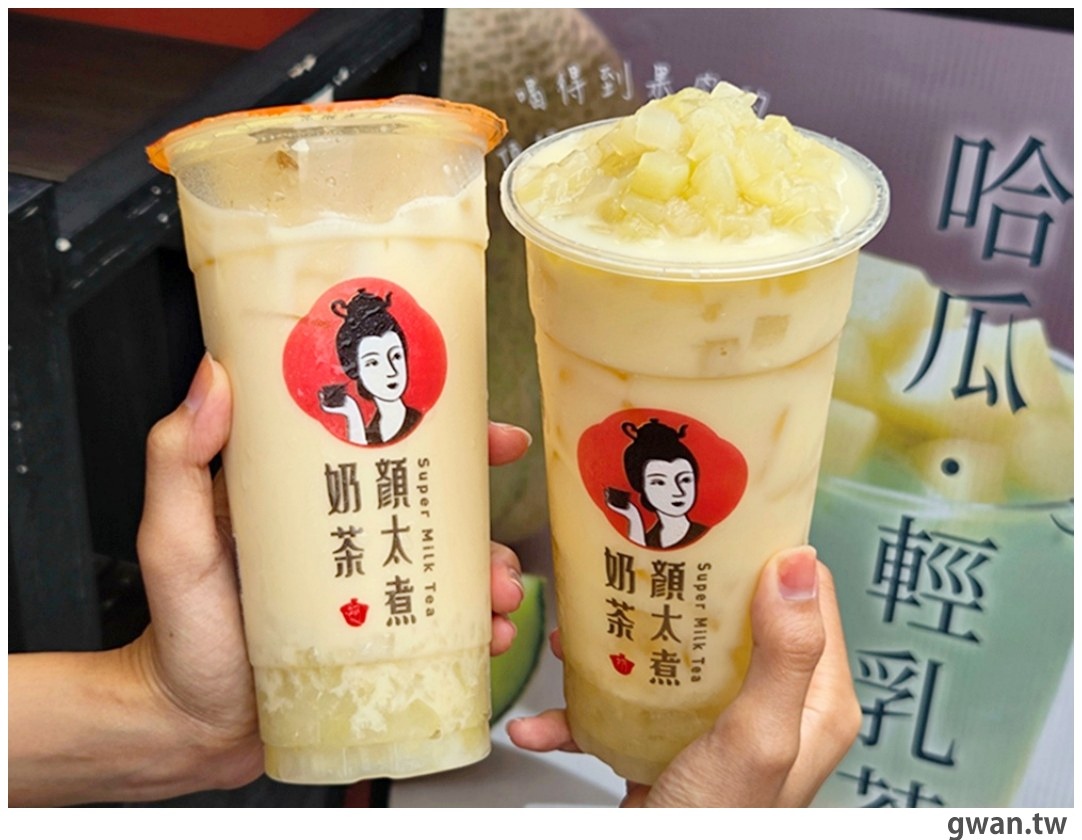 除了超人氣咖椰吐司,顏太煮近期也推出一系列「輕乳茶飲品」,主打輕盈滑順口感,讓不愛傳統厚重奶茶的朋友也有新選擇!其中讓我最好奇的就是哈瓜輕乳茶啦~