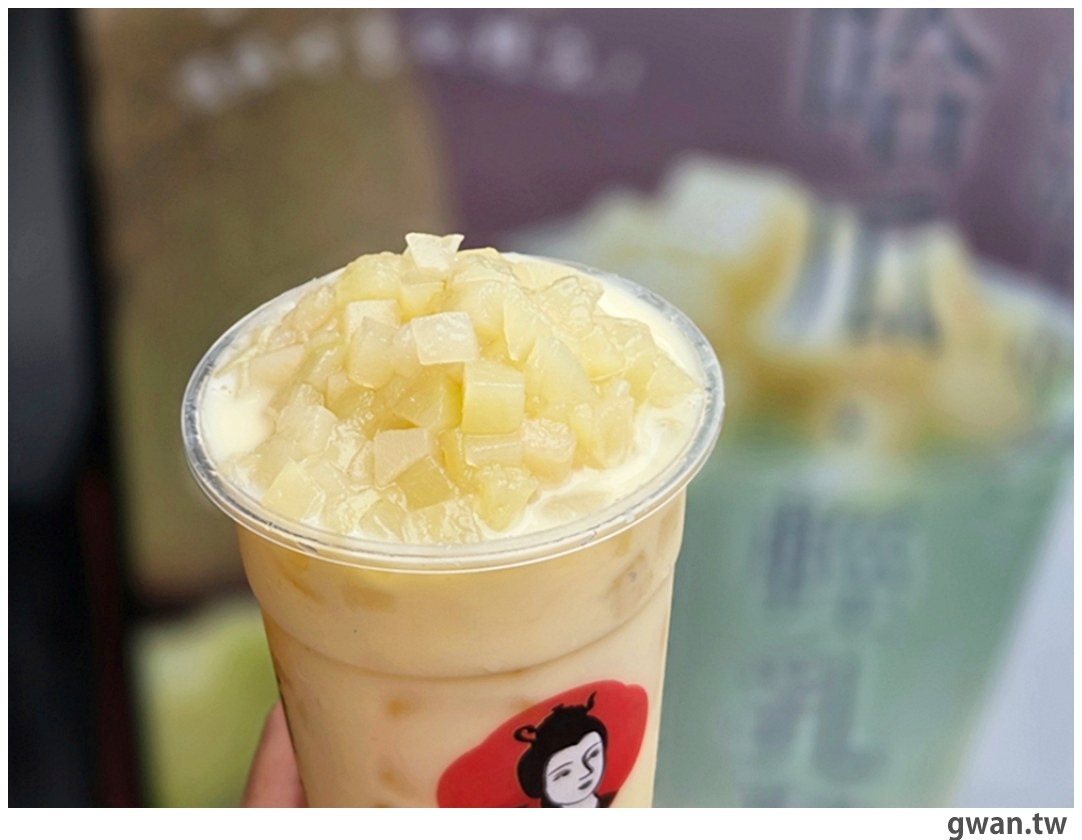 喝起來既有微微奶精香氣,又有淡淡牛乳韻味,卻不會像傳統奶茶那麼容易膩口,每一口還能吃到水果果肉,哈味超濃郁!如果你是喜歡清爽系、不厚重的奶茶控,點輕乳茶準沒錯