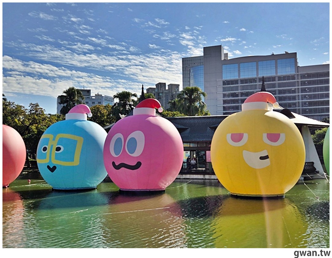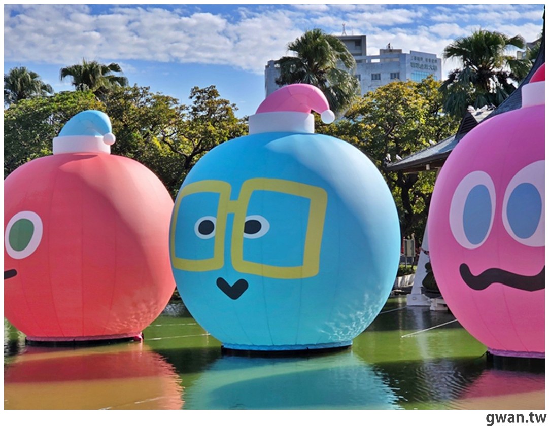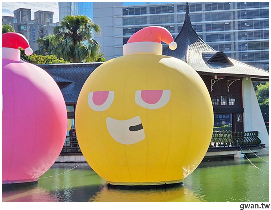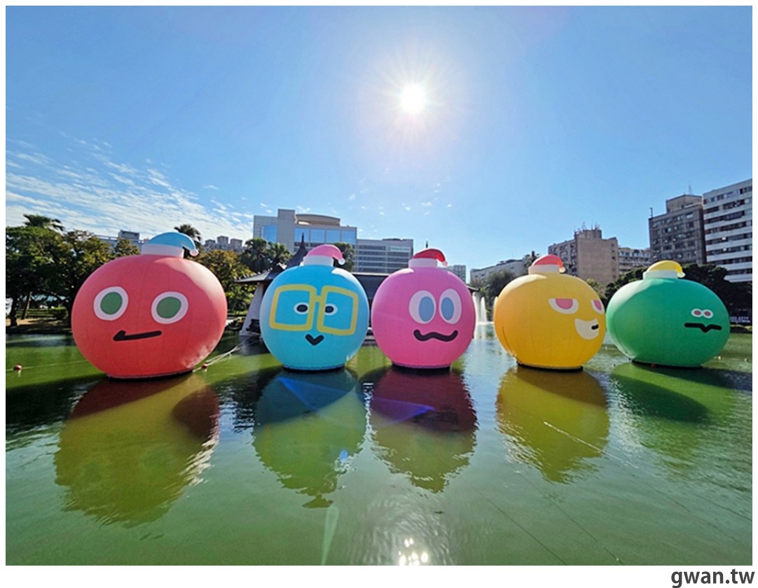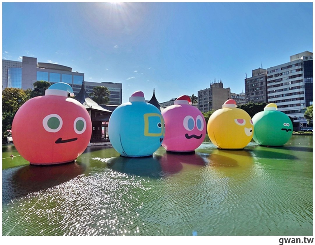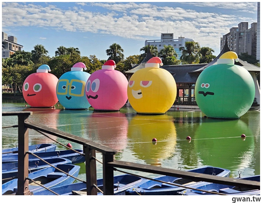最近造訪台中或是熱愛五月天的朋友,絕對不能錯過這個超萌打卡點!為了配合《五月天 [回到那一天] 25 週年巡演台中站》,打造五顆圓滾滾的限定裝置藝術!這可不是一般的聖誕裝置,是五公仔球球降落在湖心亭水面上,每一顆球都有不同表情,還戴著不同顏色的聖誕小帽,讓台中公園多了可愛的節慶氛圍感,想必之後會吸引更多人來拍照打卡了