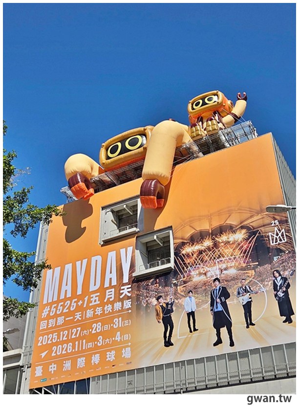 台中五迷最近真的超幸福!五月天25週年巡演暖身活動,不只台中公園有五月天球球、夏綠地公園有五月天公仔,連捷運站也陸續換上五月天限定佈景!昨天我才去過北屯的松竹捷運站,當時樓頂還是乾乾淨淨的樣子,結果今天就出現超犯規的『菜頭粿』氣球,根本是逼我再來一次哈哈 XD
