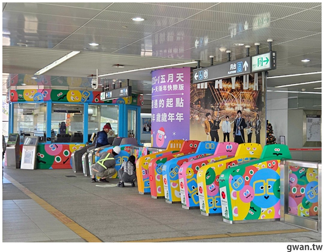 別以為拍完菜頭粿氣球就結束了,松竹捷運站裡面也同步換上五月天限定佈置,像是置物櫃旁、手扶梯兩側、柱子、閘門、服務台都全面換裝,充滿繽紛、Q版的各種元素,讓人驚喜連連