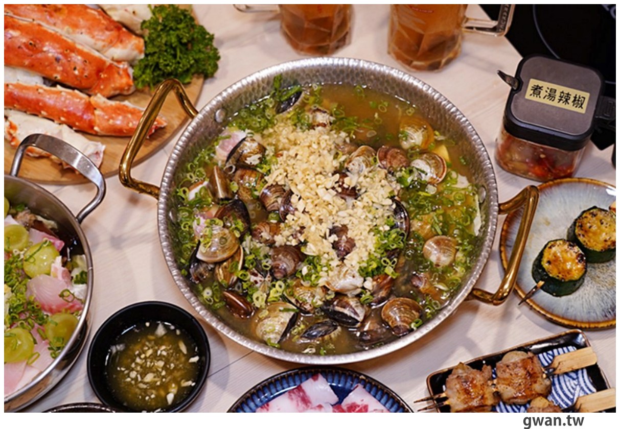 以大量蒜頭為基礎,結合洋蔥、魚露與新鮮檸檬汁等食材熬製出的特色醬料,加入蔬果高湯一起煮成緬式火鍋的湯底,喝起來不僅酸爽開胃,香氣層次也很豐富!還能任選一種海鮮主餐,我們選了蛤罵,真的是滿滿蛤蜊倒進去,鮮美湯頭吃得很過癮