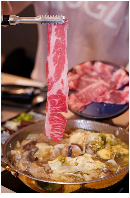 檸檬湯很適合用來涮各種肉片,吸附了湯頭的酸香滋味,不用沾醬就很好吃耶