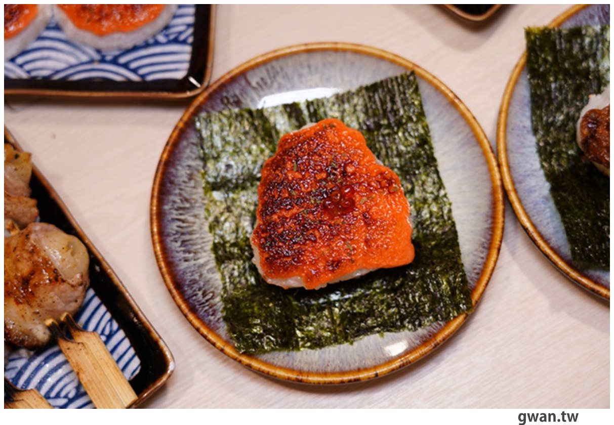 如果你不想吃一般米飯,但又想補充點主食增加飽足感,可以試試他們家的日式烤飯糰!有松葉蟹膏跟明太子兩種口味,飯糰上擠了厚厚醬料,炭烤後香氣四溢,邊邊帶點微酥的鍋巴口感超誘人~