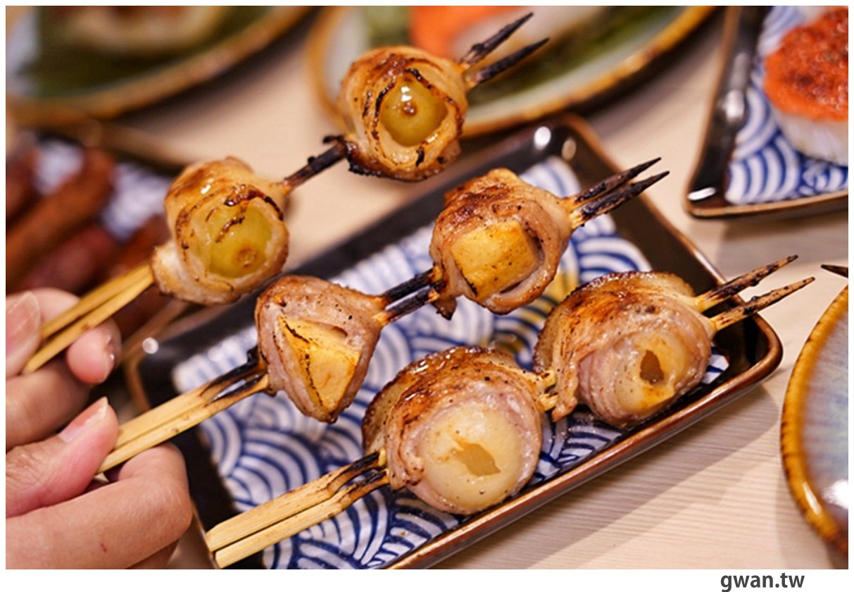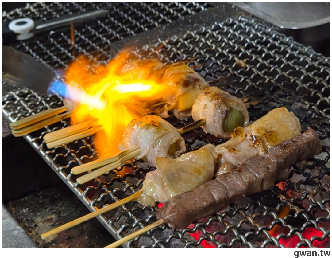他們家的烤串不只用炭火烤,還會用噴槍將食材表面炙燒,再沾上秘製醬料反覆燒烤,肉片吃起來香氣十足!