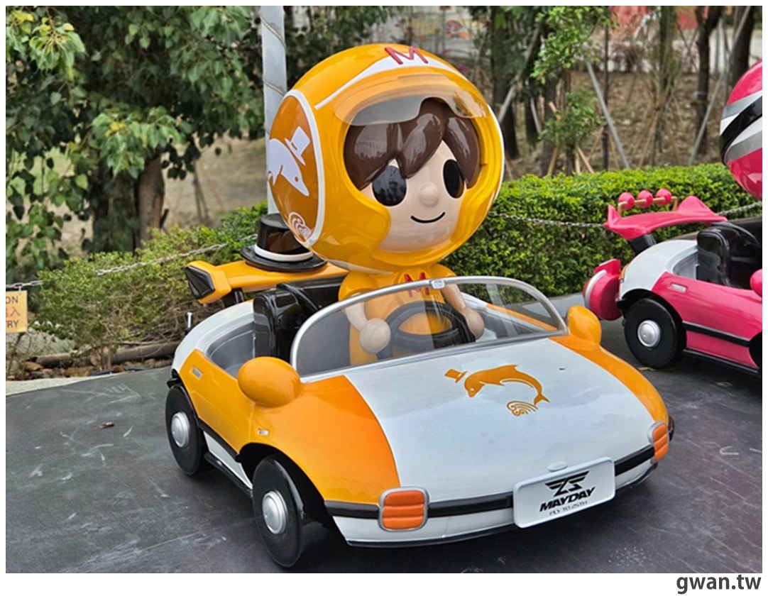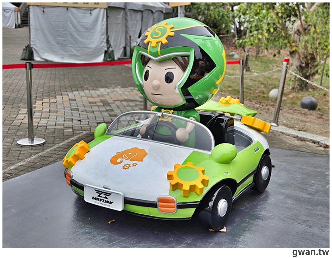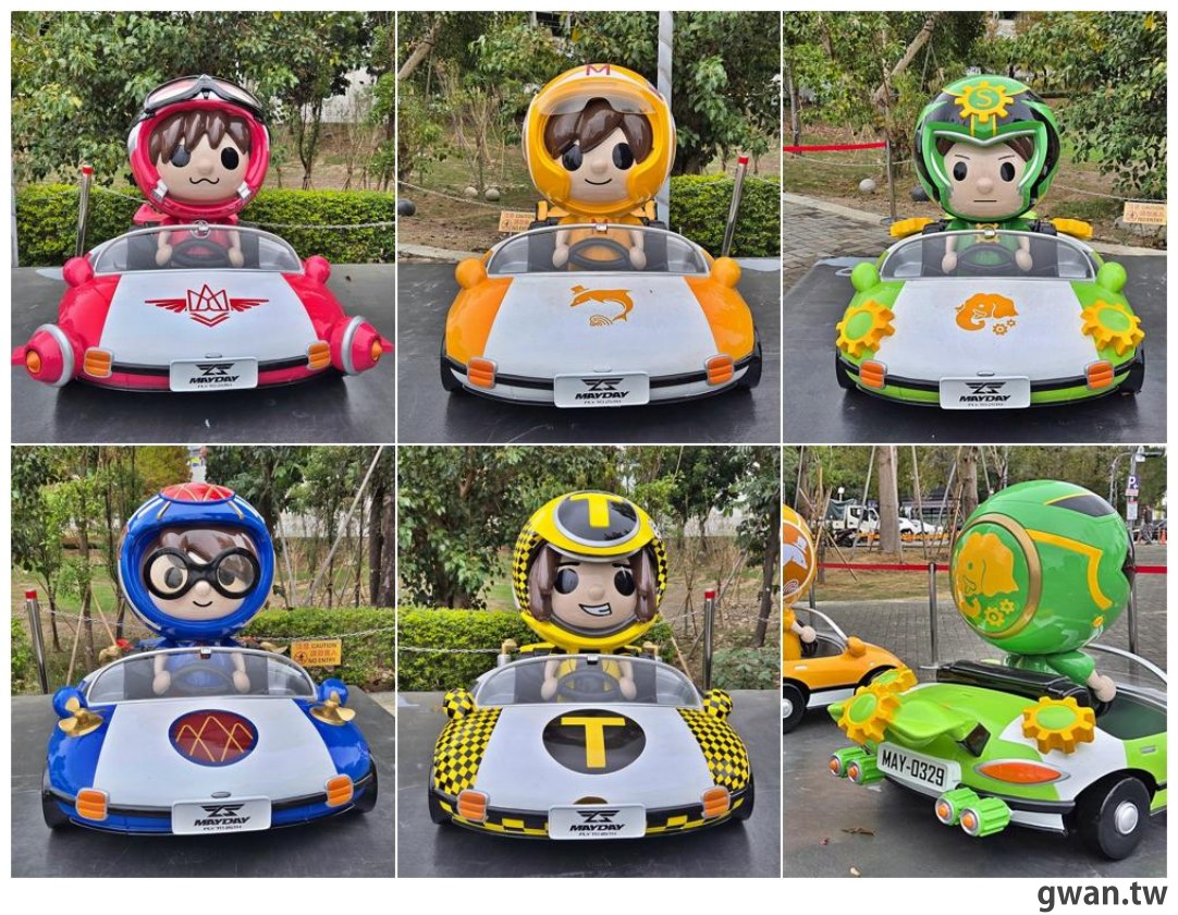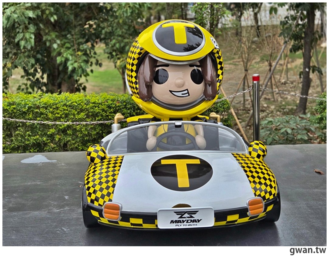 仔細看每一尊公仔,會發現他們真的不是隨便做做。每個人都有自己的專屬賽車和賽車服,從車頭燈、引擎蓋到各種小細節都各有特色。像石頭車上的大象、怪獸車上的海豚,都跟五月天的專輯或形象有很深的連結,這些小細節對五迷來說一定超有感!