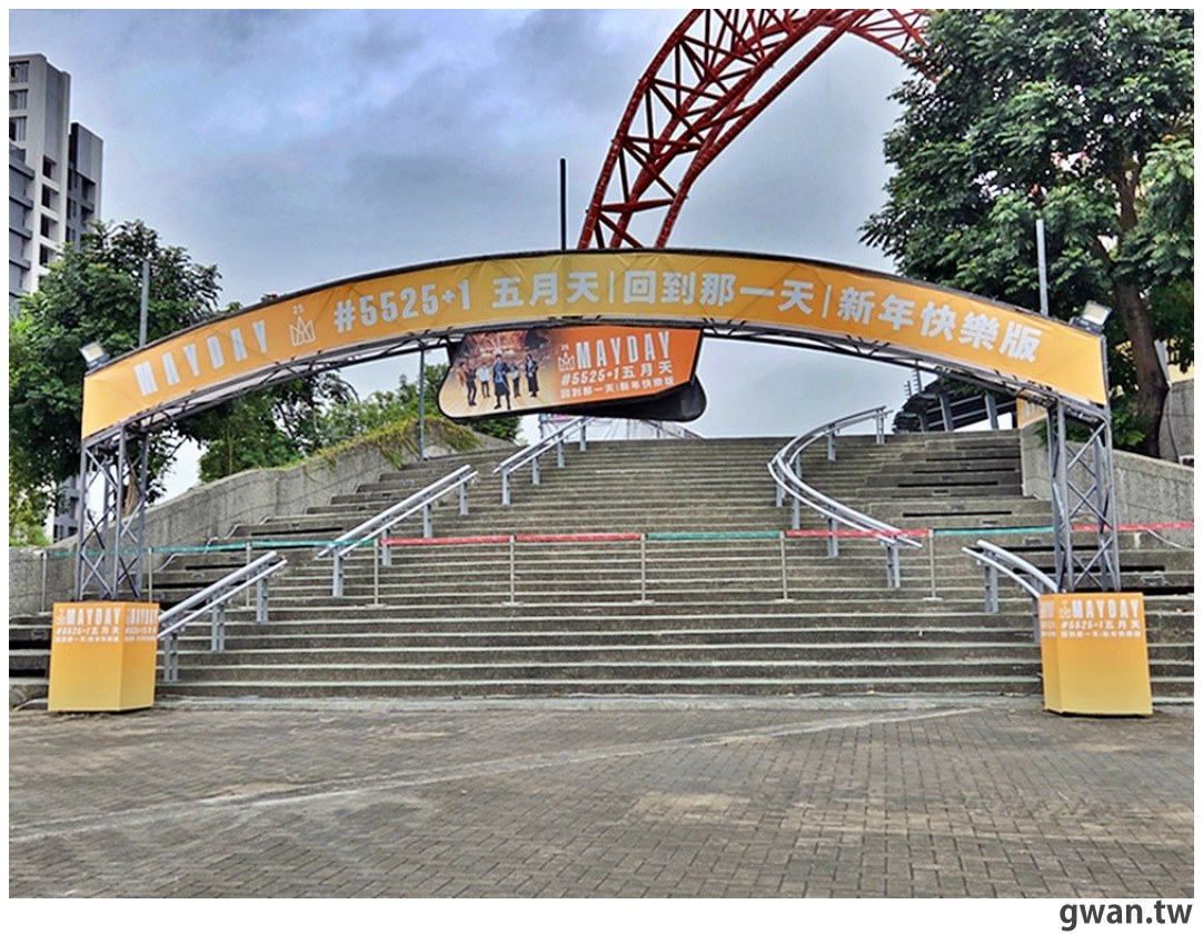 而且不只是公仔,連外圍飄揚的旗子也通通都是五月天,整個場外已經先暖身起來了