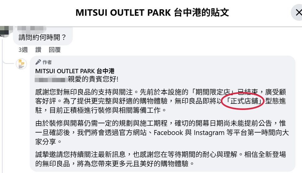 三井無印良品何時開幕?
