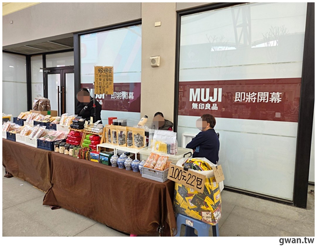 從現場照片可以看到,這次無印良品是一整排共6間店舖連在一起!但我們假日過來,前面剛好有市集攤位,沒仔細看很容易擦身而過,我也是路過第二次才驚覺這排白色圍幕的驚喜,感受到那長長店面的驚人氣勢XD