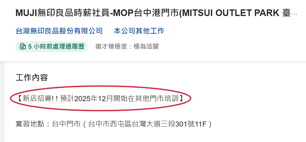 但根據人力銀行的最新徵才資訊中,可以看到「預計2025年12月起會先在其他門市進行培訓」,加上離年底其實也沒剩幾天,這樣最快也要等明年才有辦法開幕吧!