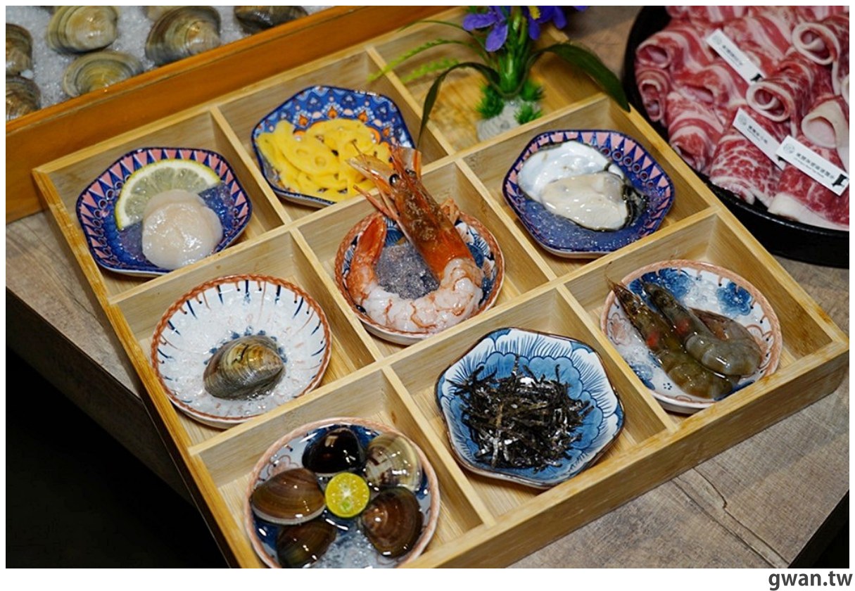 海鮮部份是用九宮格擺盤,看起來好精緻喔!