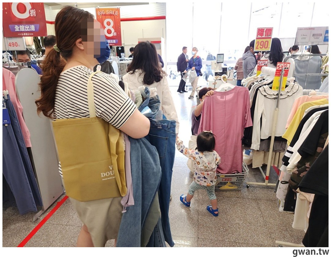 店內最大宗的就是各種服飾,男女服飾、童裝、大尺碼這邊都有,難怪吸引各種年齡層,大家都挑得很開心