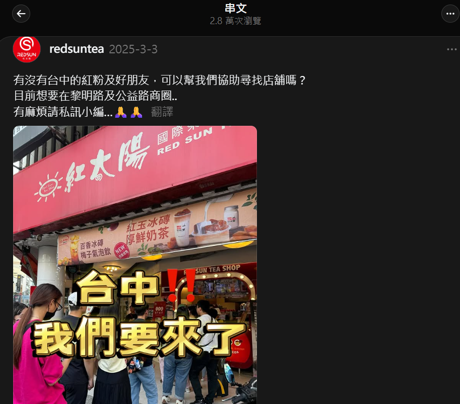 紅太陽之前公告要進軍台中的消息,大家反應好熱烈,我也一樣好期待呀!