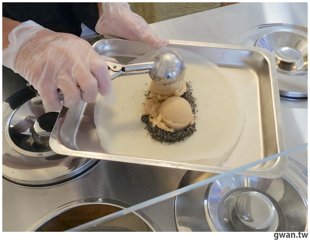 後方則是內場製作區,可以看到店員挖冰淇淋球的樣子