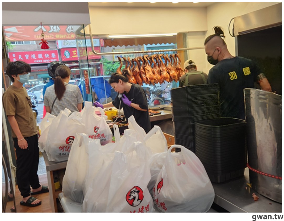 何記烤鴨是一間外帶烤鴨店,大部份是預訂單為主,但我那天來現場客也好多,即便下著雨也沒有澆熄大家的熱情(笑~)