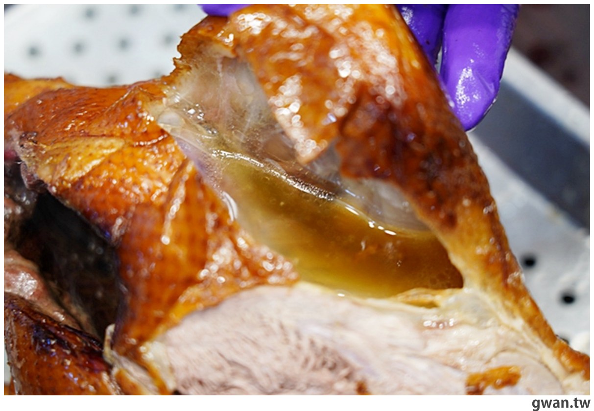 而且烤鴨前置處理中,會在鴨身裡塞入特調中藥材,吃起來就帶有淡淡香氣,不會完全沒味道