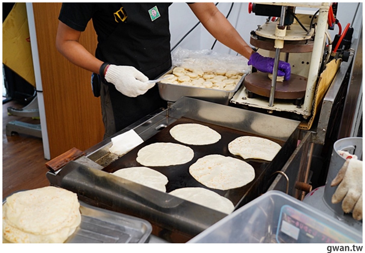 他們家餅皮是帶點厚度的,中間可以撕開變兩片,包兩片就是更有嚼勁這樣,也可以拿餅皮去做蛋餅