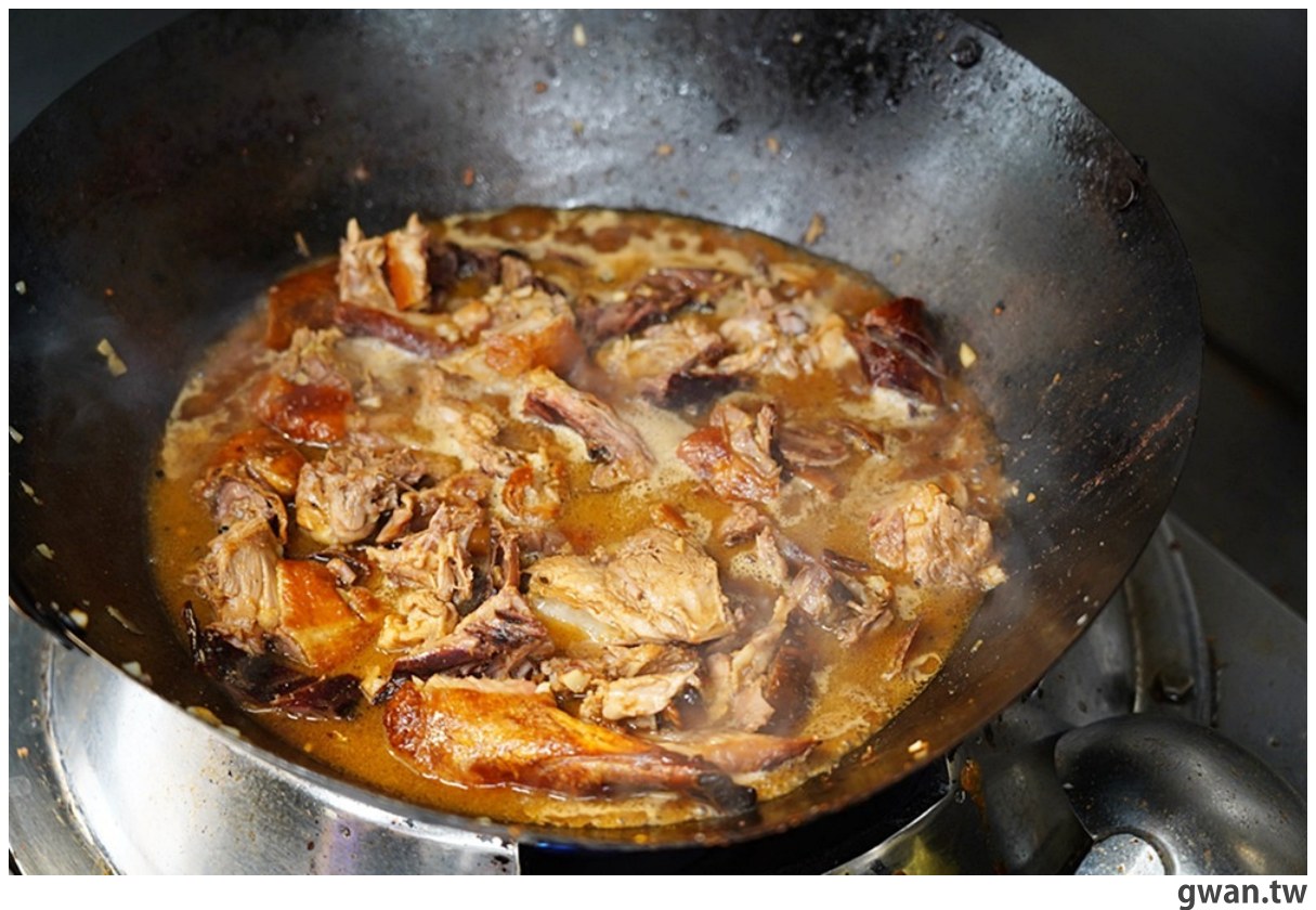 大火翻炒後還會燜煮一下,讓醬料味道都透到鴨架裡