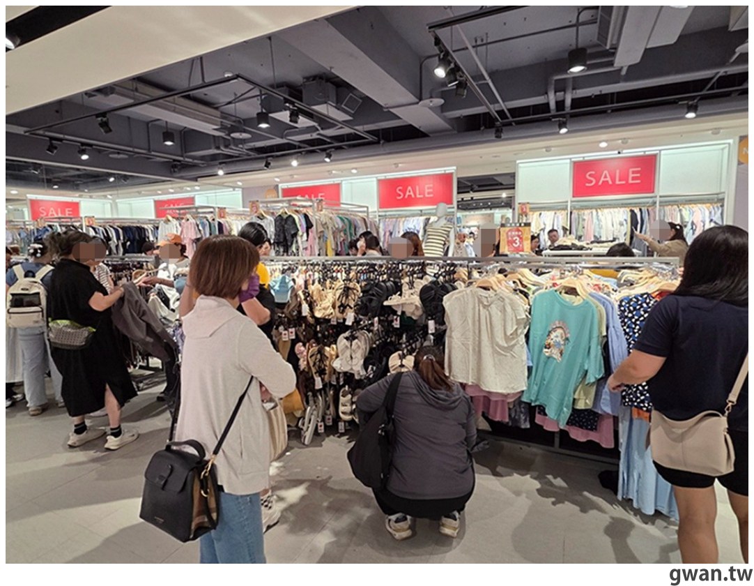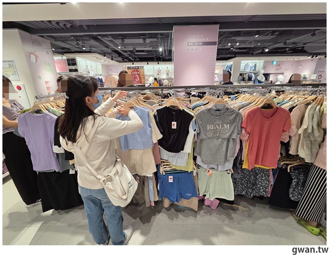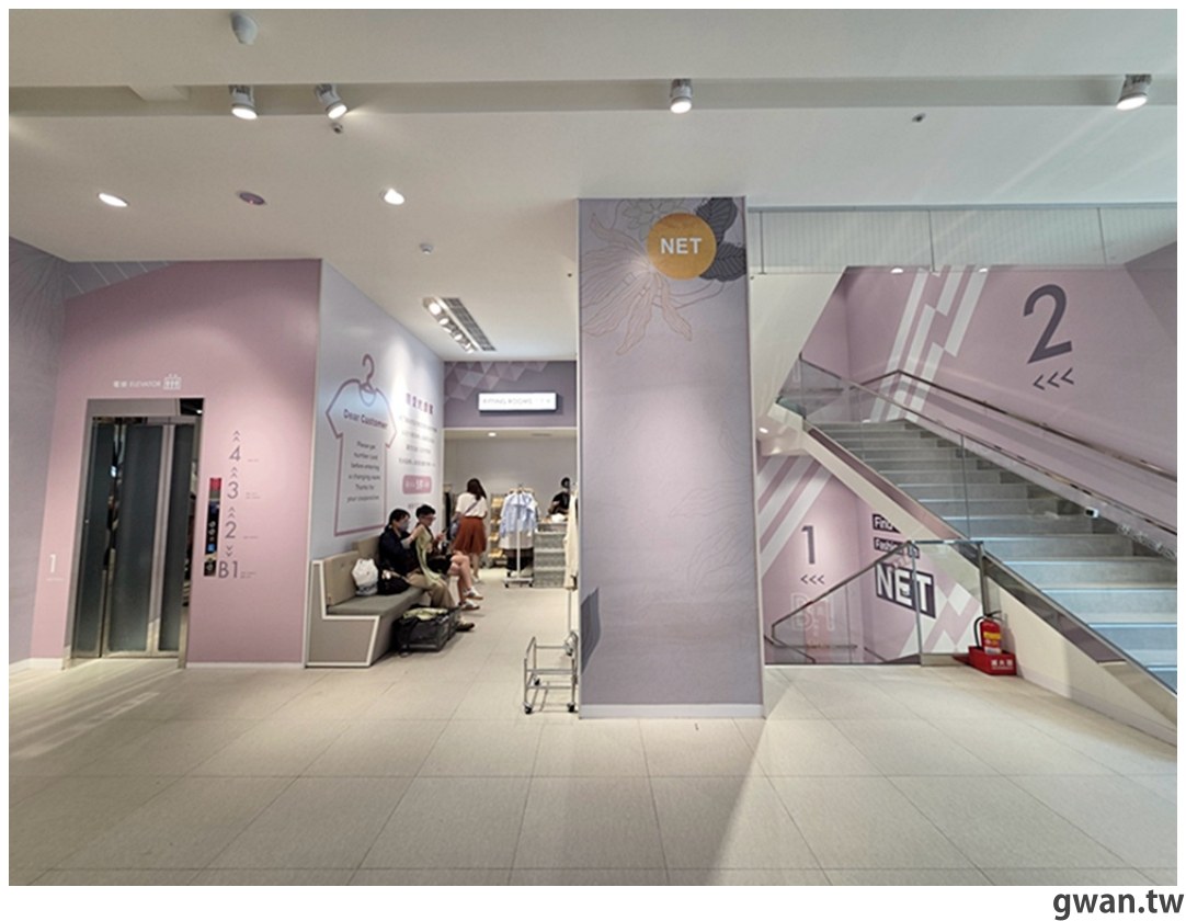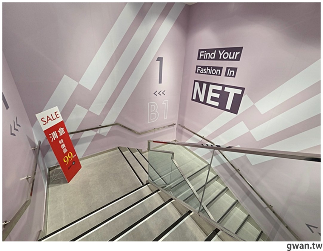 台中這間NET的清倉區在B1,如果你是衝著紅標5件3折而來,直奔地下一樓就沒錯了