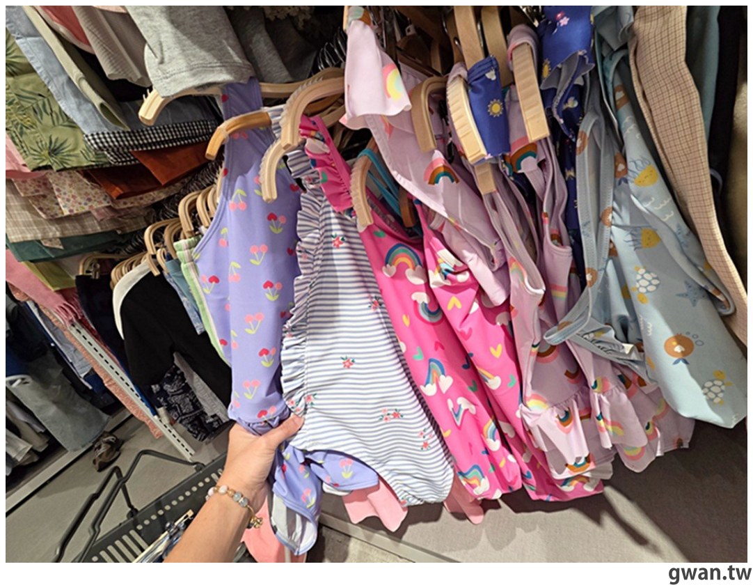 看到漂亮的小裙子以及女童泳裝,圖案都很可愛,泳衣大概90元就能帶走,可惡我家都小男生不能買XD