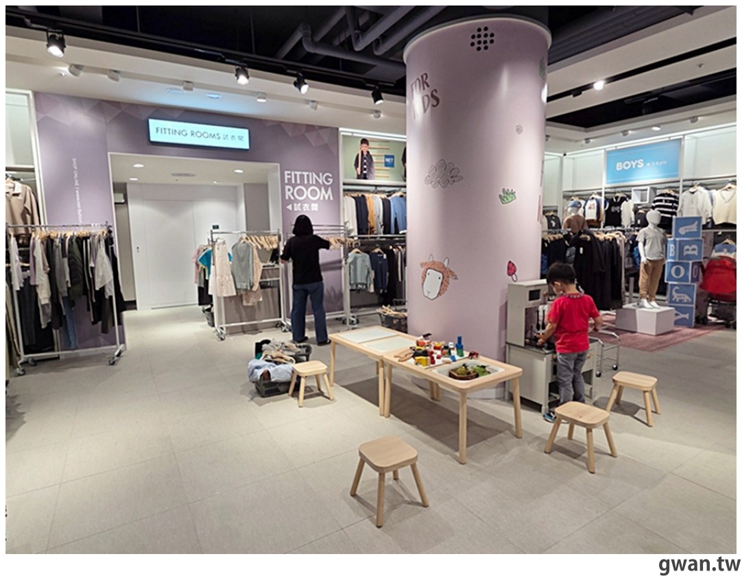 最神奇的是B1樓還佈置了兒童遊戲區,準備了一些簡單的積木跟家家酒玩具給孩子玩,後面就是試衣間