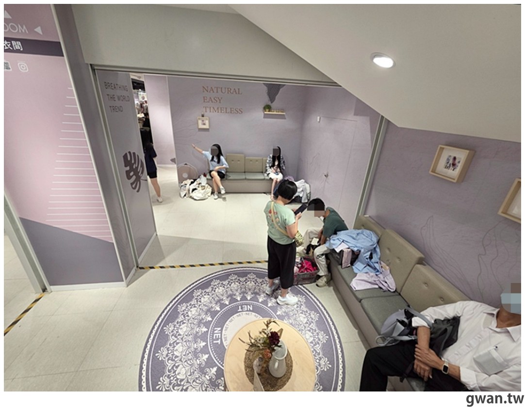 這裡除了空間很大外,裡面還有樓梯、電梯、手扶梯,每一樓層還有試衣間跟休息區(男友/老公存放區XD)
