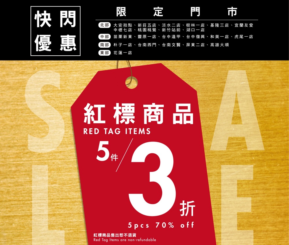 提醒大家,這次的NET紅標5件3折是有限定門市的!想要參加活動的朋友,記得先鎖定好門市資訊,才不會白跑一趟