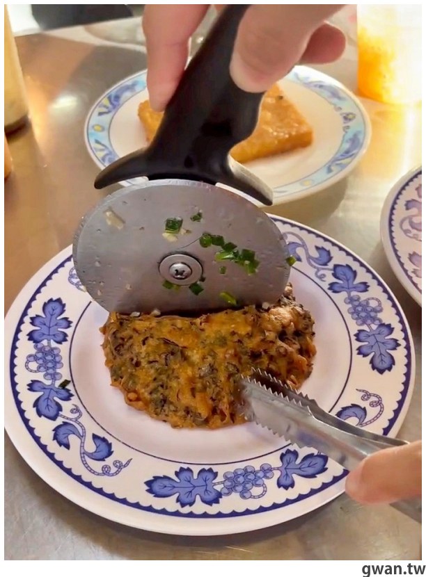 餐點上桌後,老闆跟我說旁邊有工具可以用,我才發現他們居然還準備披薩刀讓客人分切蚵嗲,覺得好可愛喔~