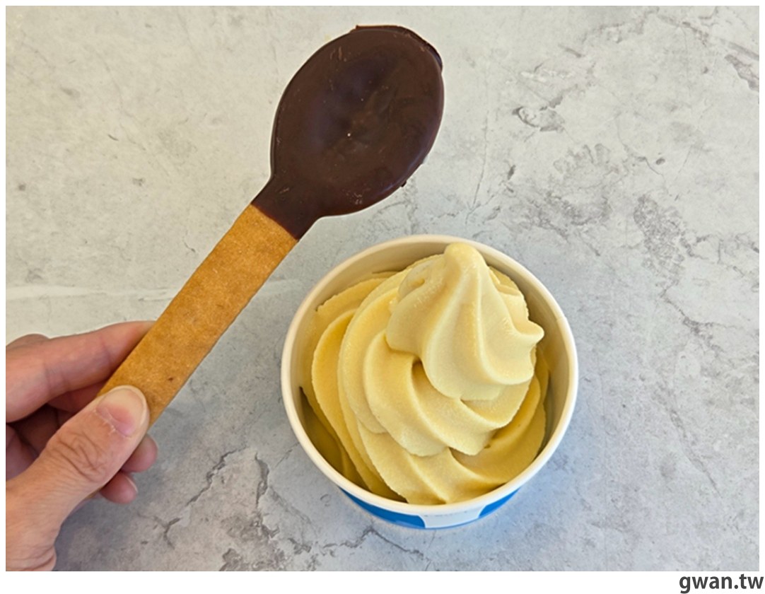 如果你本來就是起司控,還蠻推薦可以試試這次的起司蛋糕霜淇淋,整體是濃郁不膩的鹹甜滋味,起司風味也很平衡,是會回購的口味!而巧克力餅乾湯匙只要10元加購價,也可以買來拍照嚐鮮,但因為很難咬,我覺得有買過就好哈哈