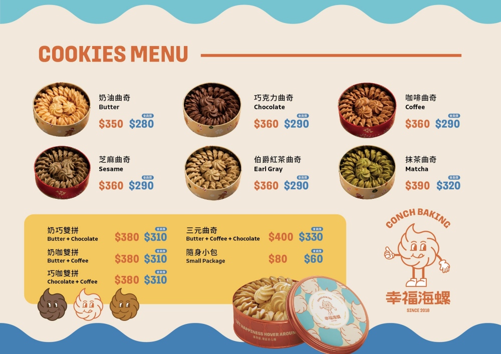 現在曲奇餅有六種口味,還有雙拼跟三拼,建議你們先免費加入會員再購買,價格直接差了70元!幸福海螺跟市面上知名的曲奇餅比起來,價格便宜不少,但品質完全不輸,除了現場購買也可以官網訂購
