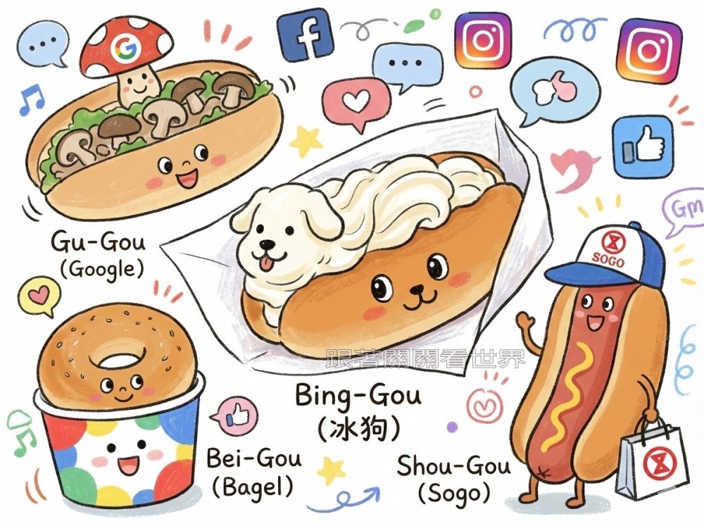 由於冰狗最近在社群討論度很高,網路上甚至出現各種諧音歪樓,比如說加了香菇變菇狗(Google)、裝在杯子裡變杯狗(Bagel)、廣三賣的叫熟狗(Sogo)…,網友們的創意梗真的好煩好好笑XD