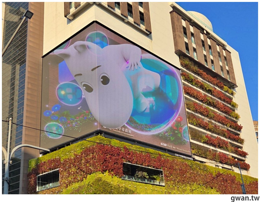 兩年前在勤美誠品出現一面高達六層樓的3D裸視牆,當時號稱是『全台最大的3D裸視螢幕』,路過的人都會忍不住抬頭多看幾眼,我也非常期待它正式啟用,但後來聽說夜間光害被附近住戶抗議,計畫就默默卡住。最近來勤美看超大嚕嚕米,發現勤美3D裸視牆回歸了!畫面還搭配即將到來的2026中台灣燈會主角「姆明一族」,不過說實話,我自己還是習慣叫「嚕嚕米」啦(笑~)