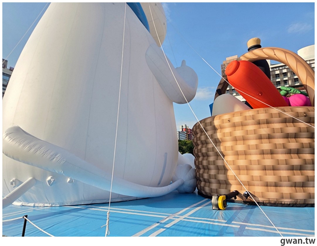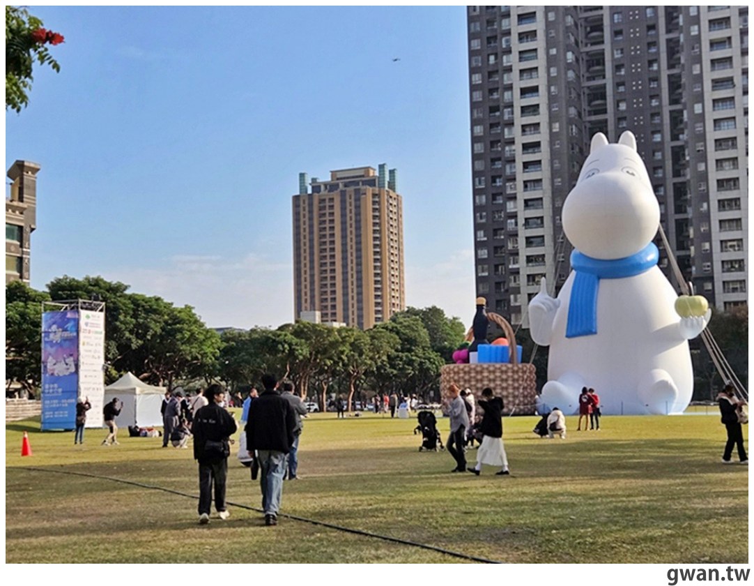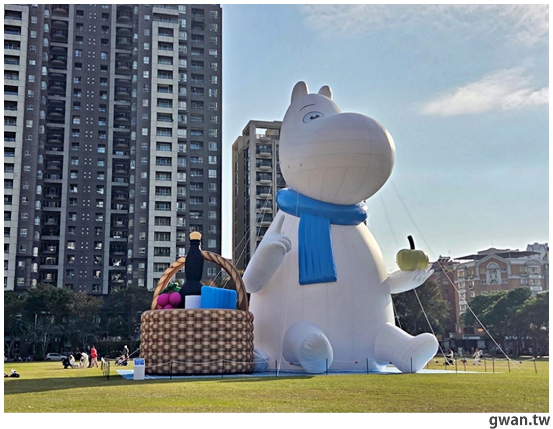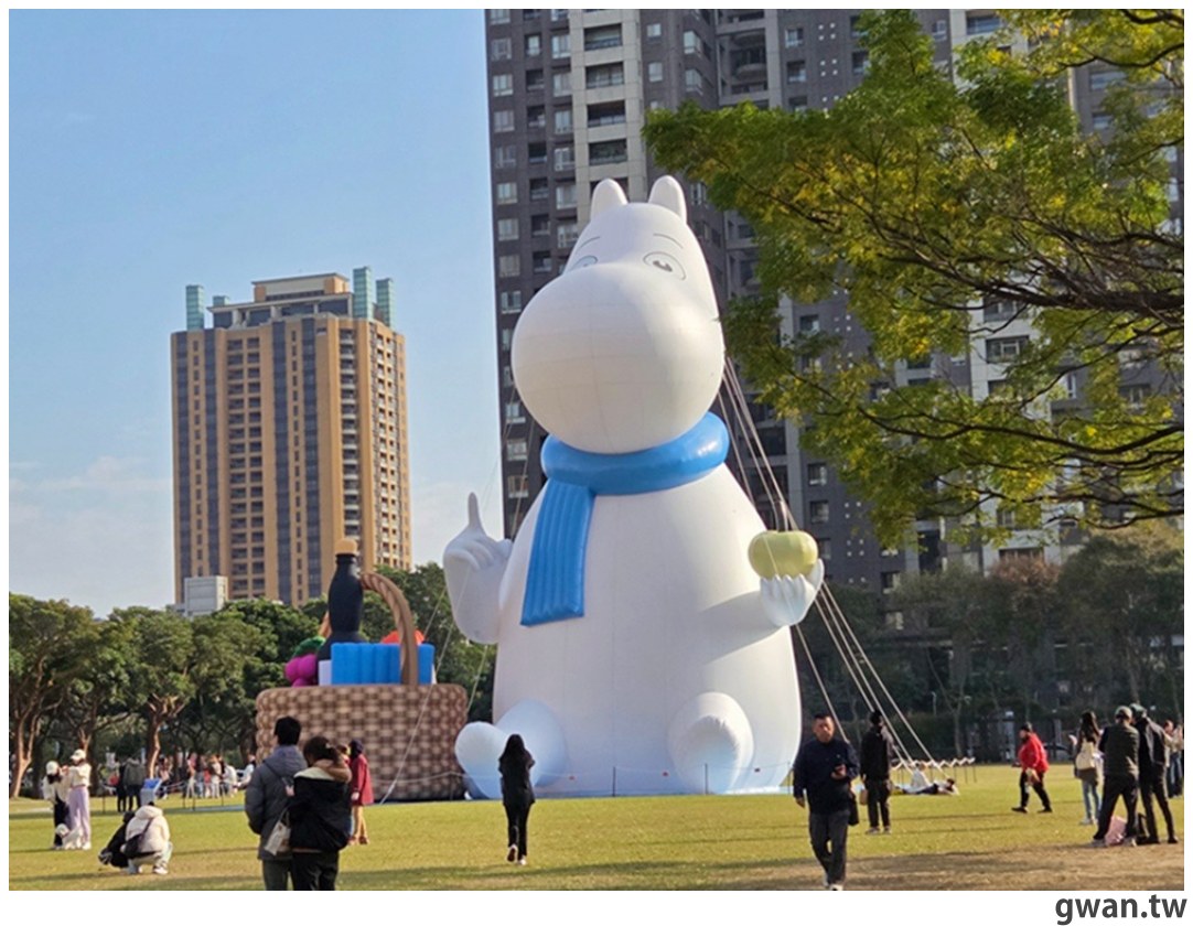 最近去勤美市民廣場散步的朋友,一定會發現草地上出現一隻高達21公尺的巨型嚕嚕米氣球,白白胖胖坐在那裡,脖子上還圍著藍色圍巾,大家目光都被這位重量級的新朋友給吸走了!