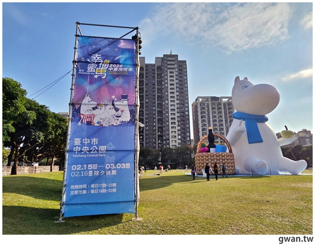 為了給2026中台灣燈會暖身,台中這次請來嚕嚕米當主角,主打『幸福蜜馬』主題,巨大圓滾滾的身軀往草地上一坐,整個就是好Chill,上週我人還在鄉下探親,滑Threads一看到消息,立刻收藏起來,回台中就趕快來朝聖了