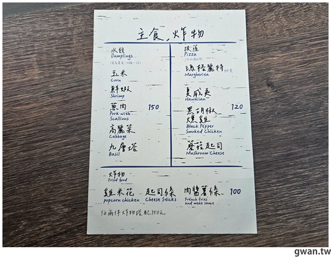 這裡不像一般咖啡廳只有甜點和飲品,居然還有主食可以點,炸物、披薩,甚至水餃,想吃點正餐也沒問題