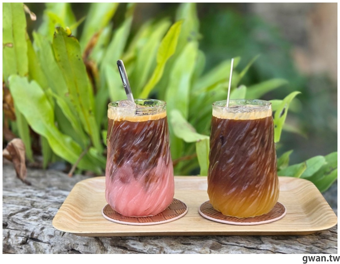 不得不說,芭樂美式真的是顏質擔當,夢幻粉紅色漸層,光看就讓人捨不得喝!一端上桌,濃濃的芭樂果香撲鼻而來,第一口喝下去就像在喝芭樂汁,接著咖啡香氣才會慢慢散開,最後留在嘴裡的是一點點迷人的微苦咖啡韻味,層次感很有記憶點