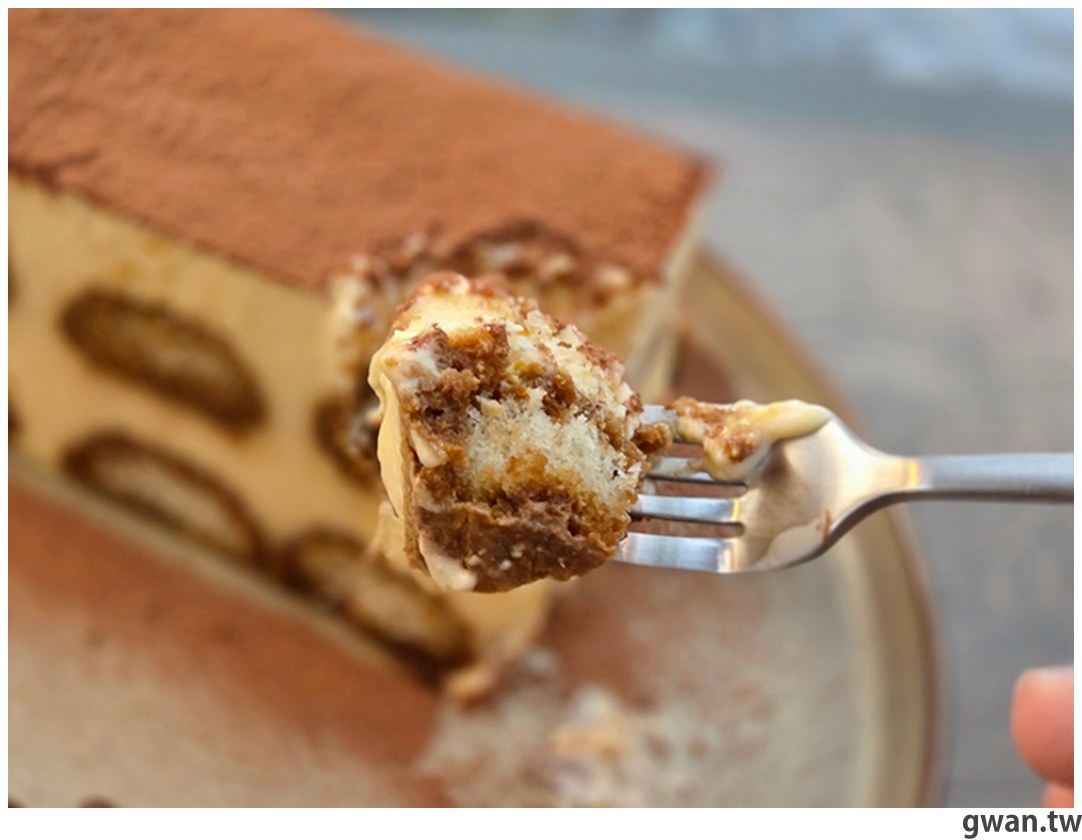 如果你喜歡滑順一點的口感,就先放一下回溫,質地會變得柔軟、層次也更明顯!中間是帶有酒香的手指餅乾,搭配濃郁奶香和可可粉,整體表現也很不錯