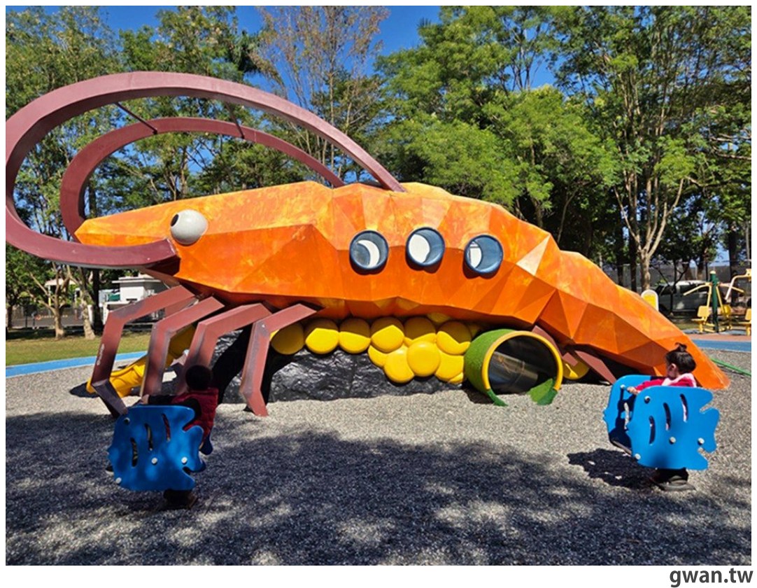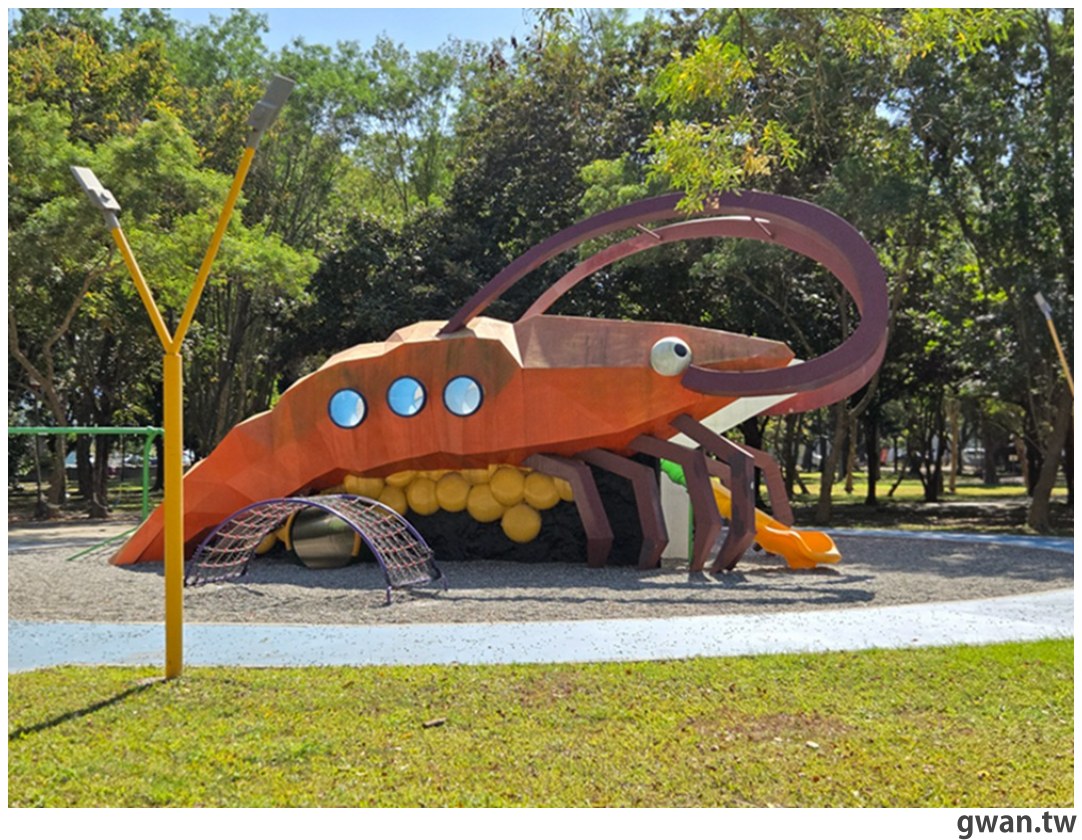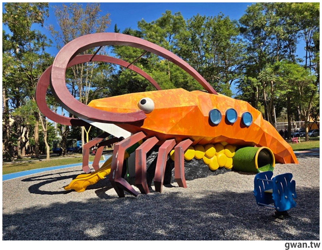 屏東景點|誰說溜滑梯都一樣?屏東這座公園直接把泰國蝦搬進去XD