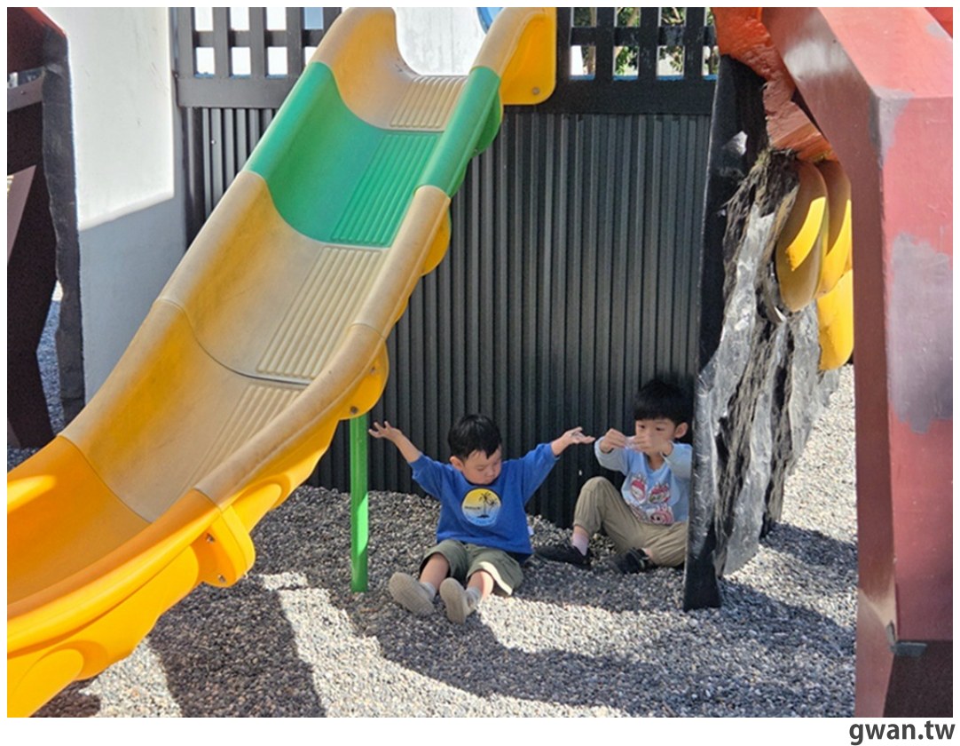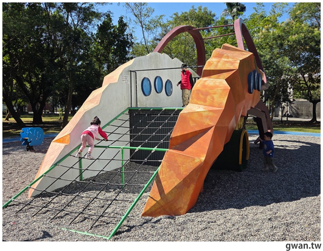 有趣的是,這座溜滑梯的難度分佈很微妙XD 攀爬挑戰適合大一點的孩子,但是溜滑梯長度對大孩子來說,溜個一兩次就會覺得有點無聊!